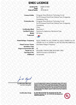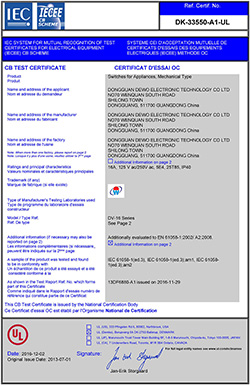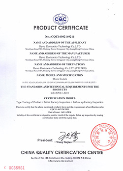 德傲微動(dòng)開關(guān)CQC CB CE證書正式下發(fā)